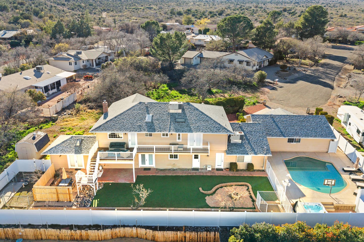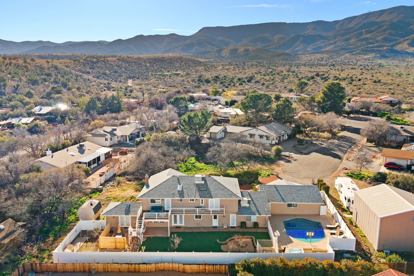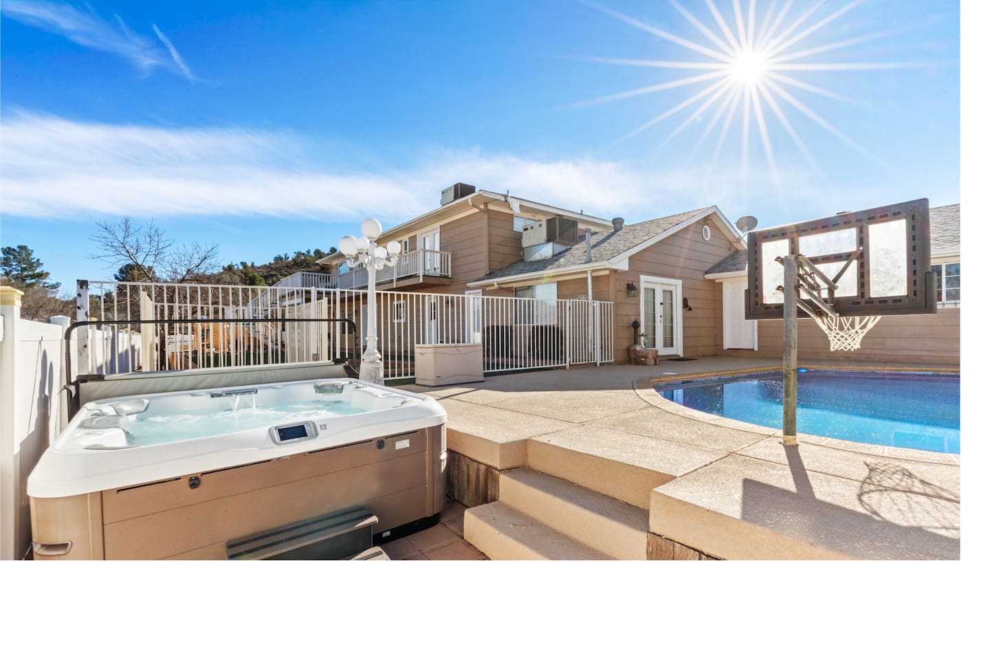 Crystal-inspired 8BR/4BA retreat in Cottonwood, AZ! Enjoy a private pool, hot tub, sauna, cold plunge, and exercise area. Spacious living, pool table, and outdoor fireplaces make it perfect for family gatherings or group getaways. Themed bedrooms offer comfort and style. Close to Sedona, wineries, and scenic hiking. Amazing restaurants, stores, all within short driving distance. Experience this unique geode oasis—ideal for relaxation, adventure, and unforgettable memories!